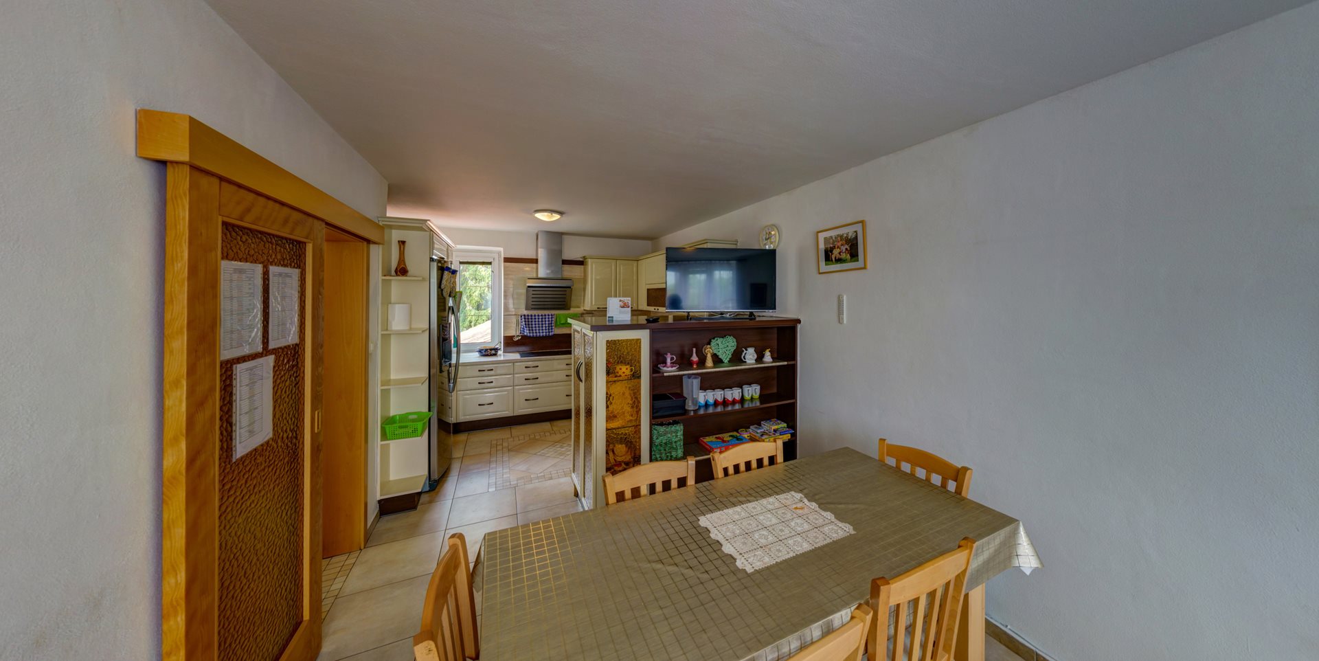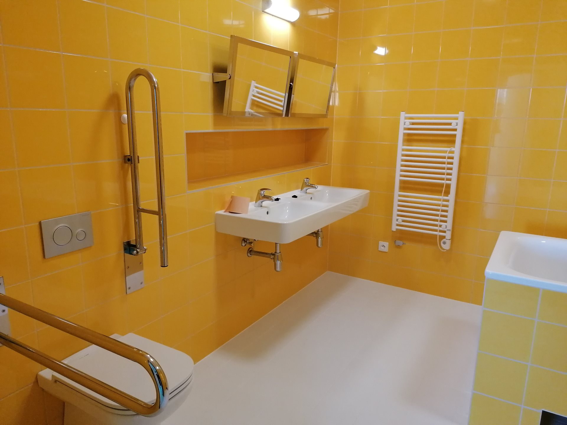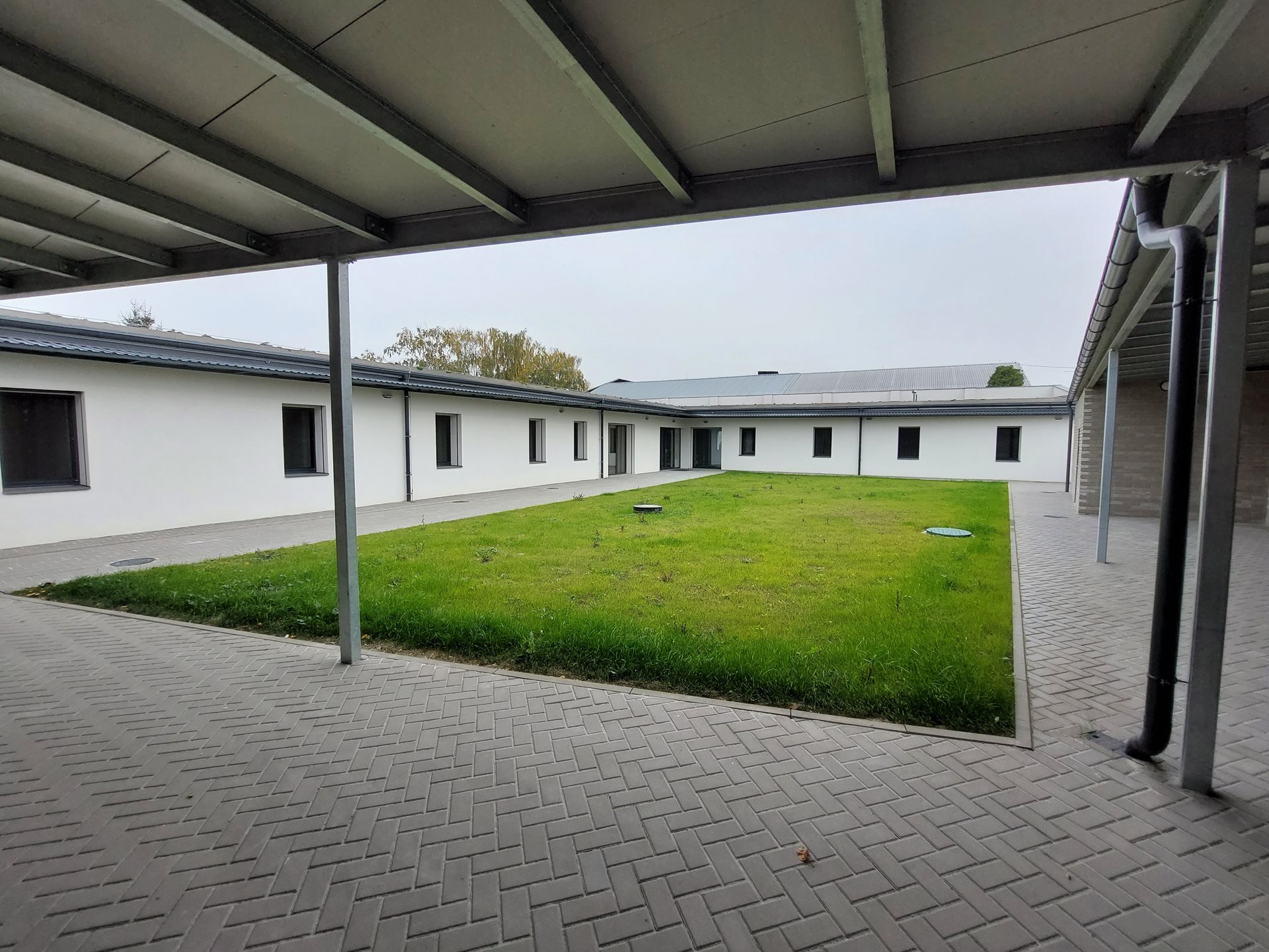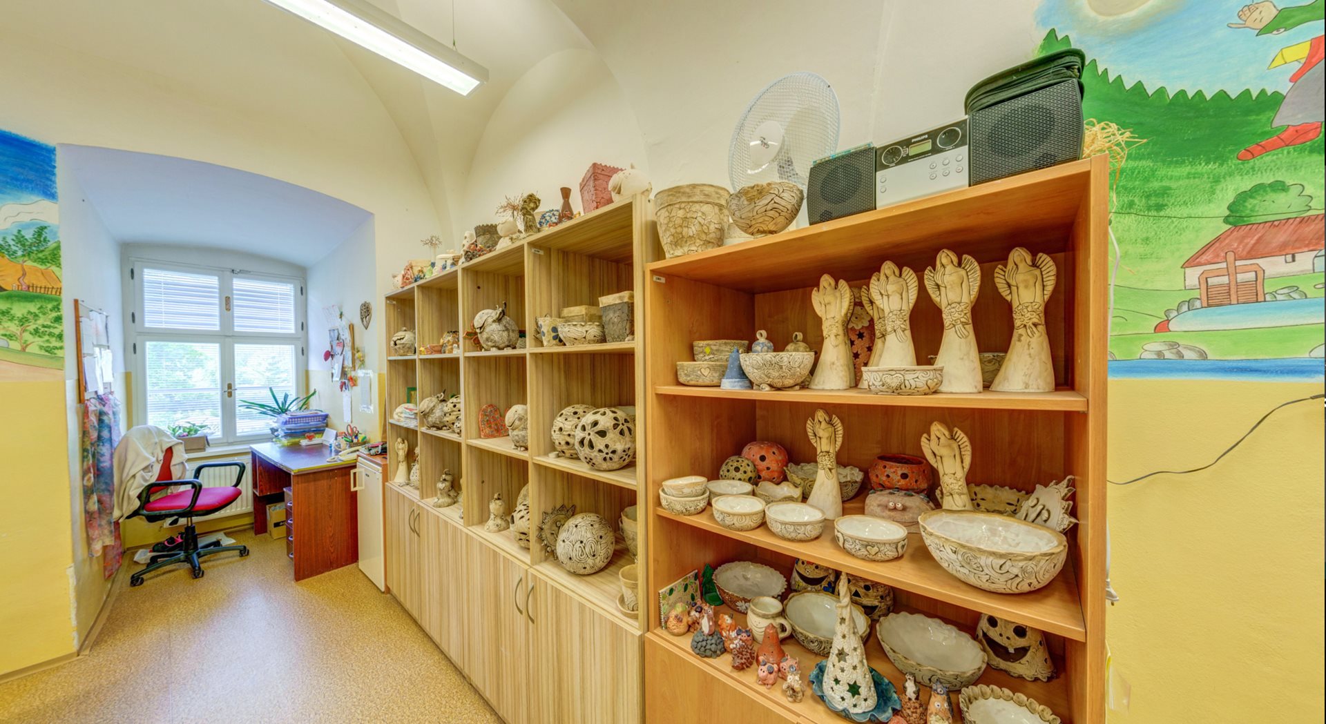 1. NP – chodba, kancelář, koupelna se sprchovým koutem a WC pro personál, šatna pro personál, tvořivá dílna, sklad, technická místnost, kotelna