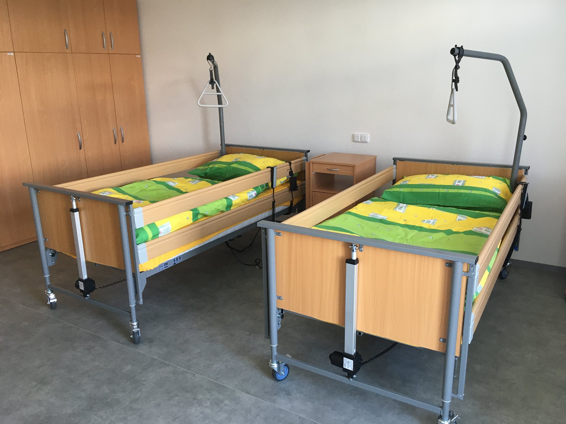 2. NP – chodba, 4 jednolůžkové pokoje, kuchyň, špajz, WC, koupelna se sprchovým koutem a WC, šatna klientů